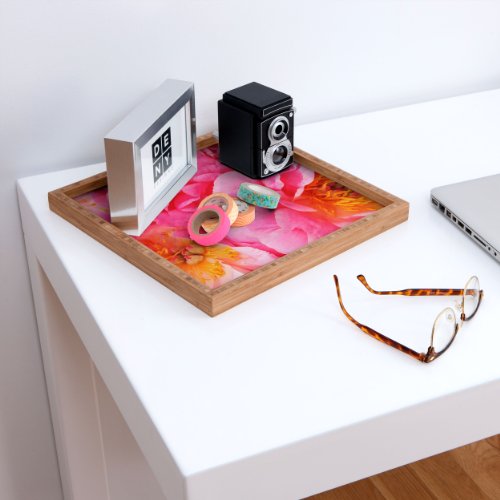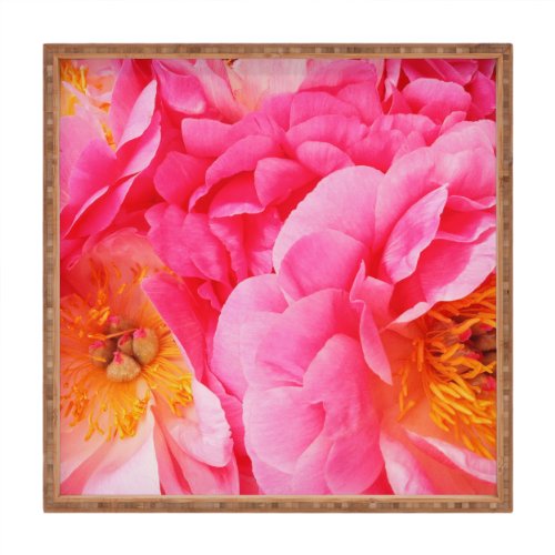 Deny Designs Happee Monkee Hot Pink Peony Indoor/Outdoor Square Tray, 16 x 16