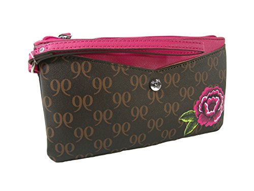 (Nine West)/Accessories/Handbags/DIRECT FROM USA/New Nine West Logo Large Wristlet Purse Hand Bag Clutch Brown Pink Floral Rose