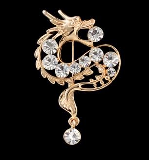 -. Title : 美しい 輝き ゴールド ドラゴン モチーフ 昇り龍 男性用 ブローチ