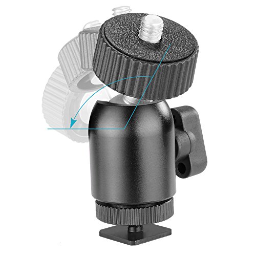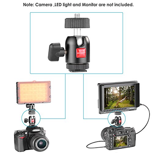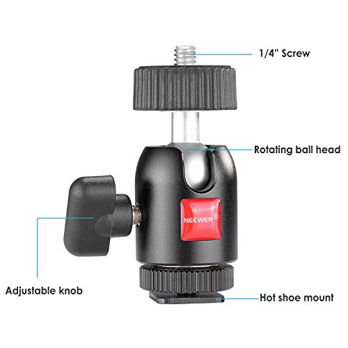 Neewer 1/4 inch Screw Tripod Mini Ball Head with Lock and Hot Shoe Adapter for LED Light, Monitor, DSLR Cameras, Video and Camcorders