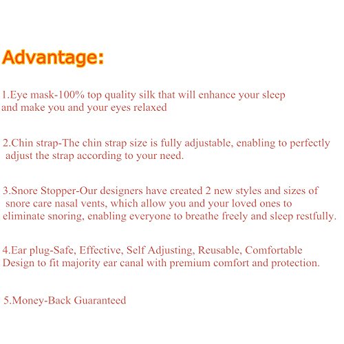 LinkS Stop Snoring Kit helps you stop snoring and sleep better! Advantage: 1.Eye mask-100% top quality silk that will enhance your sleep and make you and your eyes relaxed 2.Chin strap-The chin strap size is fully adjustable, enabling to perfectly adjust the strap according to your need. 3.Snore Stopper-Our designers have created 2 new styles and sizes of snore care nasal vents, which allow you and your loved ones to eliminate snoring, enabling everyone to breathe freely and sleep restfully. 4.Ear plug-Safe, Effective, Self Adjusting, Reusable, Comfortable,Design to fit majority ear canal with premium comfort and protection. 5.Money-Back Guaranteed Package include: 1pcs Anti Snoring Chin Strap 1pcs Sleep Mask Blindfold 2boxes(8pcs) Snore Stopper(2styles) 1pair Earplugs 0 |