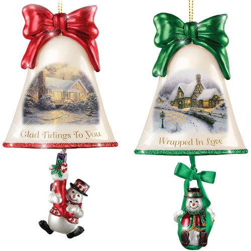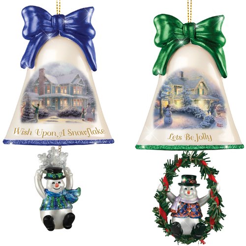 -. Binding : Kitchen -. Brand : Bradford Exchange -. Feature : Celebrate Christmas cheer with the Thomas Kinkade Ringing In The Holidays Ornament Set: Set 3, a set of 2 real glass bell Christmas ornaments featuring the wintry visions of Thomas Kinkade, available only from The Bradford Exchange / Thomas Kinkade's "Victorian Christmas IV" and "Blessings of Christmas" are beautifully showcased on the front of each handcrafted glass bell / The tops of these Christmas ornaments are crowned with hand-painted sculptural bows showcasing the look shiny hand-blown glass / One ornament features a red sculptural bow with "This Home Believes" in golden lettering and the other features a blue sculptural bow with "Dreaming of a White Christmas" in golden lettering / A hand-painted hanging sculptural snowman holding a garland and a snowman riding on an ornament ring in the holidays from your Christmas tree or ornament display -. Label : The Bradford Exchange -. Manufacturer : The Bradford Exchange -. Model : 903338 -. MPN : 903338 -. PartNumber : 903338 -. ProductGroup : Home -. ProductTypeName : HOME -. Publisher : The Bradford Exchange -. Studio : The Bradford Exchange -. Title : Thomas Kinkade Ringing In The Holidays Ornament Sets by The Bradford Exchange -. Warranty : We offer a 100% Satisfaction, 365 Day Return Guarantee.