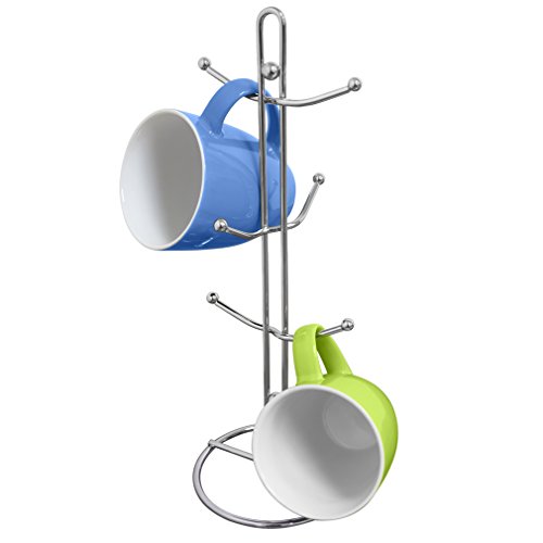 Evelots Metal Cup & Mug Rack Holder, Kitchen Accessories, Holds 6 Cups, Silver