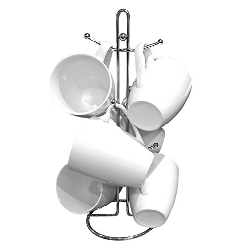 This simplistic modern design mug tree holds up to 6 coffee or tea mugs. Great for organizing the mugs in your kitchen and saving space at the same time.