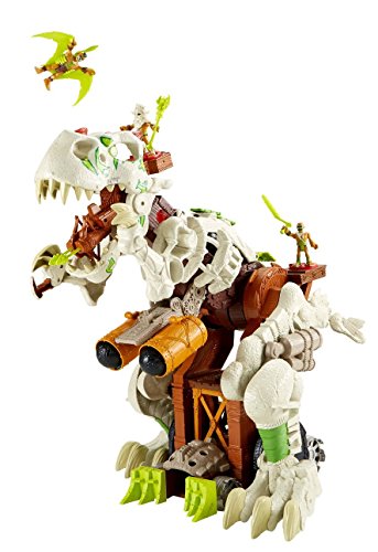 Your little dino lover's imagination gets a gigantic boost from the bony Imaginext Ultra T-Rex, with 3 Power Pads to bring him roaring to life. Turn the Power Pad behind his tail and he starts walking. A turn of the Power Pad above his left hip allows him to stand to his full height of 2 1/2 feet tall - and activates the LED lights in his spikes and his eyes. And when you turn the third Power Pad, his mouth opens and closes with awesome chomping sound effects - and even fires projectiles! If that isn't enough to scare away enemies, he has two boulder launchers in his chest that can be fired at the push of a button - and a projectile claw! With realistic sound effects while he's walking, standing and firing projectiles, this scary dino makes no bones about it. He's ready to conquer prehistoric lands - and the imaginations of young adventurers everywhere! Imaginext. Turn on Adventure!Feature