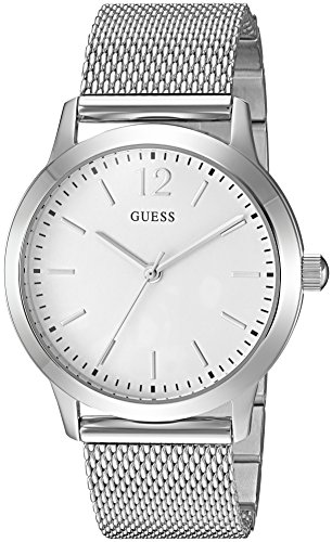 -. Title : GUESS Men's U0921G2 Dressy Silver-Tone Watch with White Dial and Mesh Band