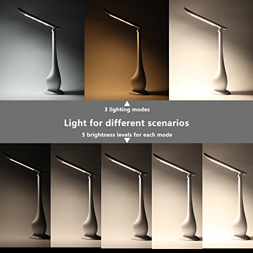 LED Table Lamp, Battery Operated, USB Charging, 3 Color Modes 5+ Level Dimmable, One Touch Control, Small and Handy Night Lights for Bedroom, Reading, Laptop, Desktop, Nightstand