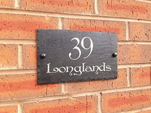 -. Feature : Beautiful riven edged slate house signs to enhance the appearance of your home. / Manufactured from natural slate by Master Craftsmen / Surface engraved with laser technology, supplied with screws, caps and pre-drilled holes for easy fixing / More sizes available - up to A3 40x30cms - please see our other products / After purchasing your sign send seller an Amazon message with details of what you would like engraved (e.g. I would like 35 Albert Square in Harrington font on 2 lines please)