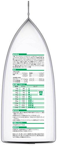 原材料:小麦、コーングルテン、トウモロコシ、トリ肉(チキン、ターキー)、エンドウマメ、セルロース、トマト、トリ肉エキス、動物性油脂、亜麻仁、ビートパルプ、ココナッツ油、ポークエキス、ニンジン、米、ミネラル類(カルシウム、ナトリウム、カリウム、クロライド、銅、鉄、マンガン、セレン、亜鉛、ヨウ素)、アミノ酸類(タウリン、メチオニン、リジン)、乳酸、ビタミン類(A、B1、B2、B6、B12、C、D3、E、ベータカロテン、ナイアシン、パントテン酸、葉酸、ビオチン、コリン)、酸化防止剤(ミックストコフェロール、ローズマリー抽出物、緑茶抽出物)、カルニチン、リポ酸