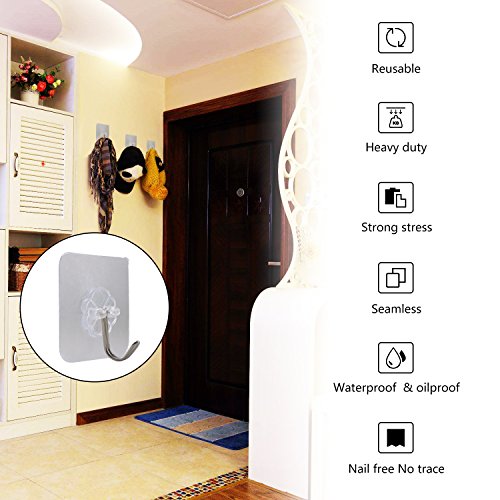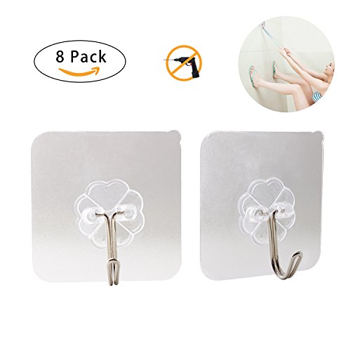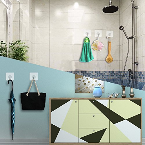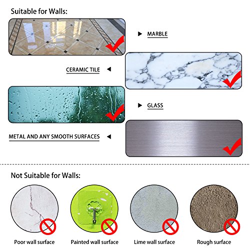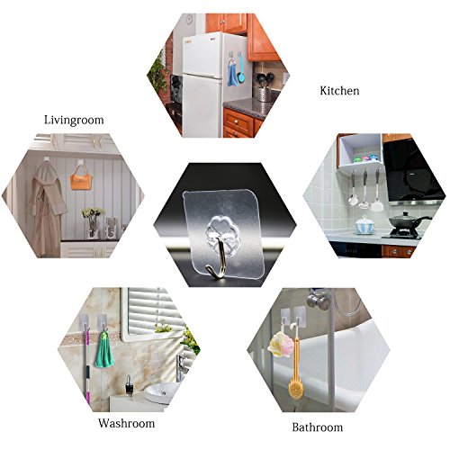 ★ WIDELY SUITABLE SCENES--The clear wall hook is suitable to hanging shower and bath accessories or kitchen utensils - Works on any smooth surface. (Note: Due to the strong adhesion, do not stick the adhesive hooks on poorly walls and painted walls in order to avoid damaging your wall).