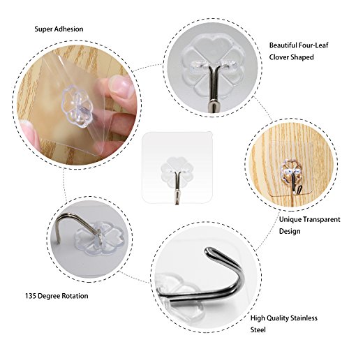 ★ PERFECT TRANSPARANT DESIGN--The almost invisible transparent adhesive hook design is perfect for home decorating. 135 Degree rotating which makes it even hangable on ceilings.