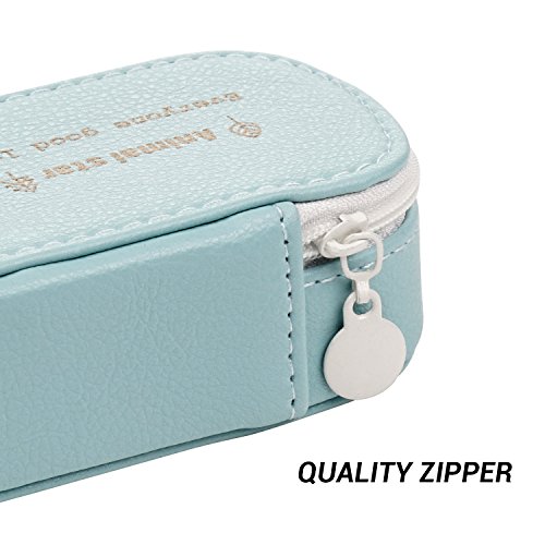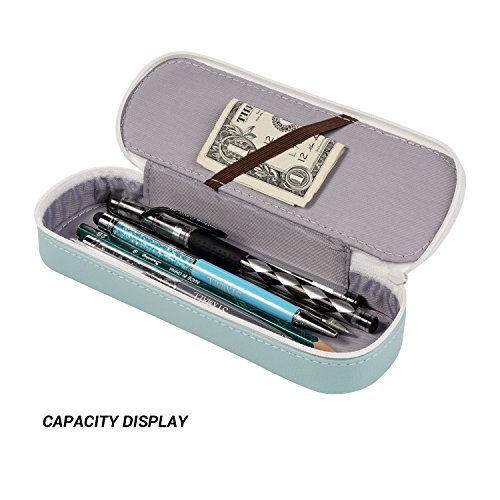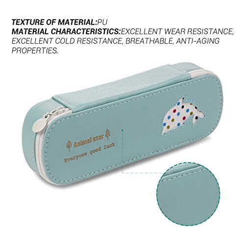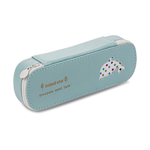 Pencil Case, PU Leather Large Capacity Pen Bag Makeup Pouch Durable Students Stationery Pouch Organizer for Kids in School with with Zipper, Blue