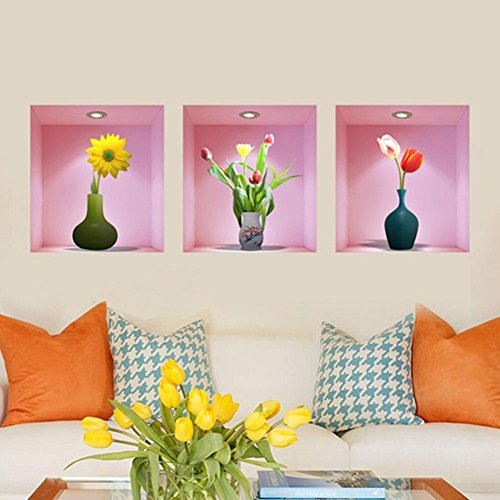 -. Feature : √Material: PVC / √Style:3D Vase / √Dimensions: 32.5 x 29.5cm / √Easy to install(Note:please peel off the back paper before sticking on the wall) / √Packing: 3pcs/set Wall Sticker, OPP bag paper card,Packing size: 39 x 29.5cm/15.35x11.61in