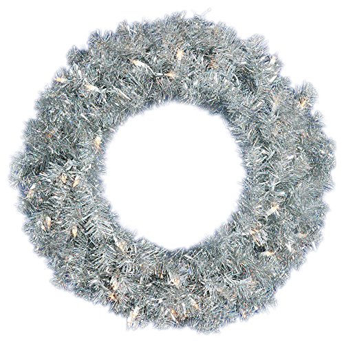 Vickerman 30" Pre-Lit Sparkling Silver Tinsel Artificial Christmas Wreath - Clear Lights
