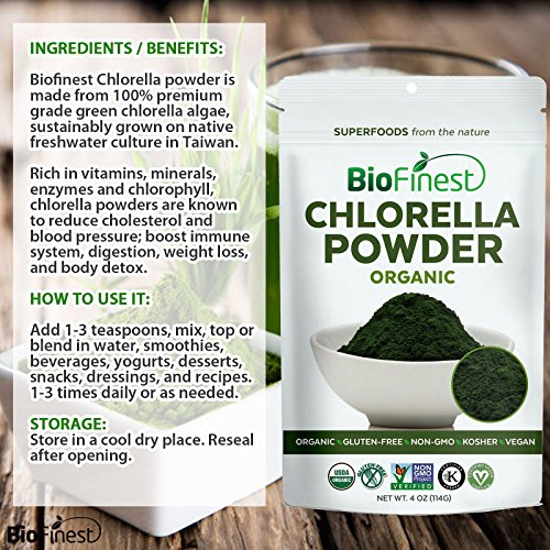 -. Title : Biofinest Chlorella Powder (Broken Cell Wall) - 100% Pure Freeze-Dried Superfood -USDA Organic Raw Vegan Non-GMO - Boost Digestion Detox Weight Loss - For Smoothie Beverage Blend (4 oz Resealable Bag)