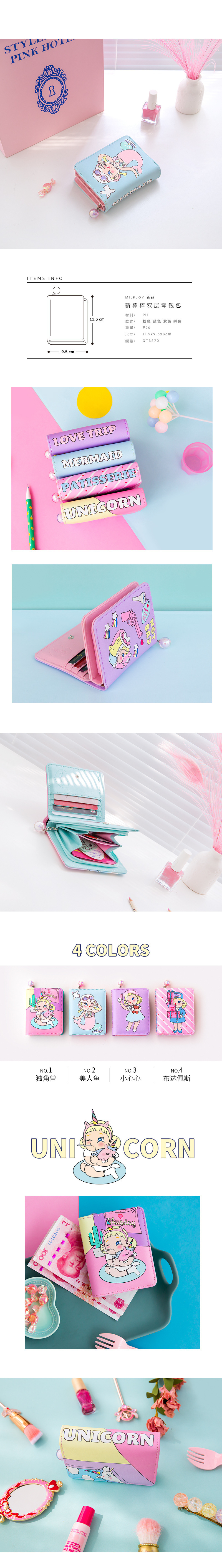 Milkjoyスティックダブル財布かわいい漫画の学生財布原宿スタイルの女の子の財布