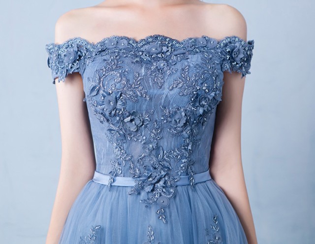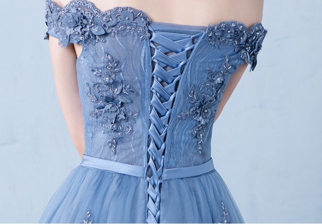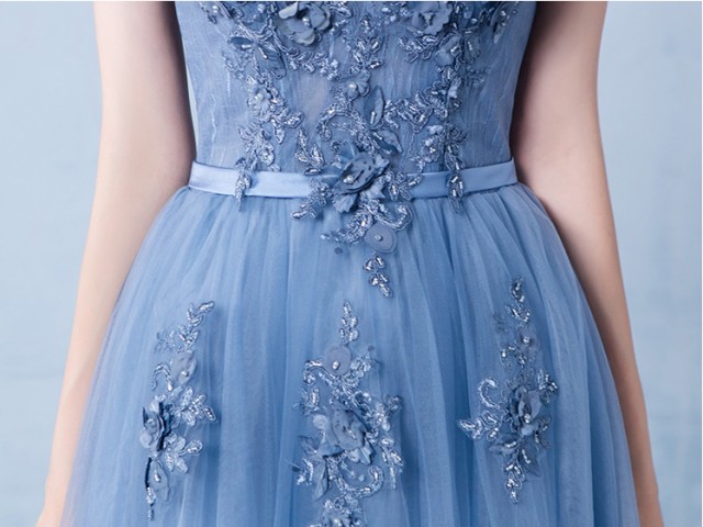 ゴージャスで高級感のあるロング丈のパーティードレス。