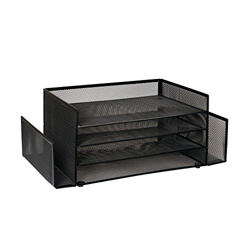 4-Letter Tray Office Desk Organizer Black with 2 Side Trays – Wire Mesh Paper Tray for Home or Office