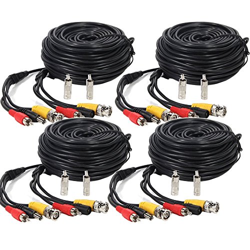 Henxlco 4 Pack 100ft Security Surveillance Camera Auido Video Power Extension Cable Pre-made All-in-One CCTV Wire