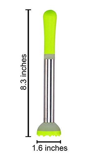 -. Feature : Rubber head and handle / 4cm diameter x 21.5cm long / Dishwasher safe / Stainless steel shaft / Lime green color