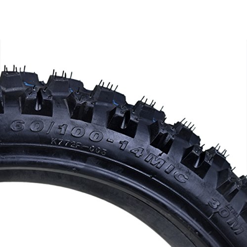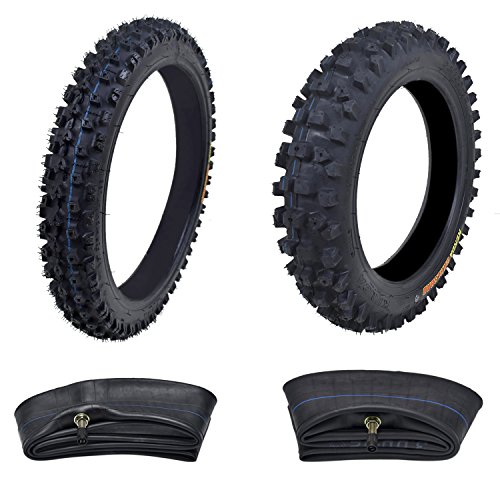 -. Brand : Kenda -. Color : black -. EAN : 0603149700383 -. Feature : √ Kenda tire set includes: 60/100-14 front tire & tube + 80/100-12 rear tire & tube / √ Aggressive knobs are designed for dirt performance, excellent for intermediate to hard terrain / √ Stiffer bead and sidewall construction provide stability and better cornering control / √ KENDA tire tubes are made from high quality butyl rubber with TR-4 straight metal valve stem / √ Full set of motocross tire and inner tube set, complete sizing and applications for all dirt pit bikes -. Label : JCMOTO -. Manufacturer : JCMOTO -. Model : USATL009+USATL010 -. MPN : USATL009+USATL010 -. PackageQuantity : 1 -. PartNumber : USATL009+USATL010 -. ProductGroup : Automotive Parts and Accessories -. ProductTypeName : TIRES -. Publisher : JCMOTO -. Studio : JCMOTO -. Title : Kenda Tire Set: Front Tire 60/100-14 With Inner Tube + Rear 80/100-12 For Dirt Pit Bikes | Dual Enduro Motocross Motorcycle Mud Off Road Tires & Tubes -. UPC : 603149700383