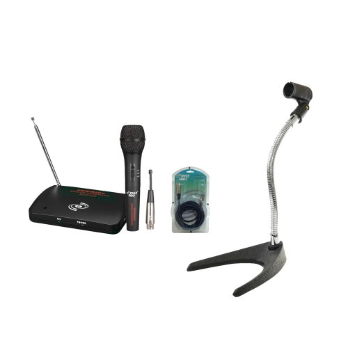 -. Title : Pyle Mic And Stand Package - Pdwm100 Dual Function Wireless/Wired Microphone System - Pmks8 U-Base Gooseneck Desktop Microphone Stand - Ppfmxlr15 15Ft. Xlr Male To Xlr Female Microphone Cable