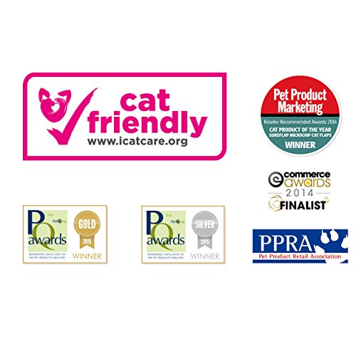 Studio : SureFlap Publisher : SureFlap Binding : Misc. Product Description The SureFlap DualScan Microchip Cat Door has a double antenna, which reads a cat's microchip when it comes into and goes out of the house. This allows you to restrict certain cats to indoor-only, whilst allowing other cats access to the outdoors. If your cat is not microchipped, the DualScan cat door can also be used with a SureFlap RFID Collar Tag. The DualScan cat door can store up to 32 cats and it is compatible with 9, 10 and 15 digit microchips (except those staring with 000, 010 or 020). A SureFlap Cat Door Mounting Adaptor is required for glass installations and one or more SureFlap Cat Door Tunnel Extenders may be required for wall installations. The DualScan cat door is battery powered using 4 AA batteries which last up to a year with normal use. When the batteries start to run low, an indicator light will flash. The DualScan cat door has a 4-way manual lock to enable locking to any combination of in/out and a central magnet on the door prevents it from flapping in the wind. The dimensions of the flap are 142mm (W) x 120mm (H). This is the smallest area your cat will have to pass through. 0