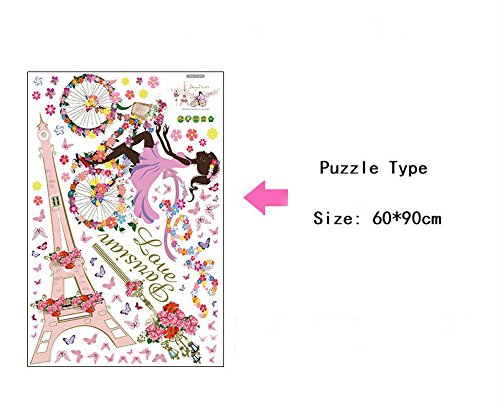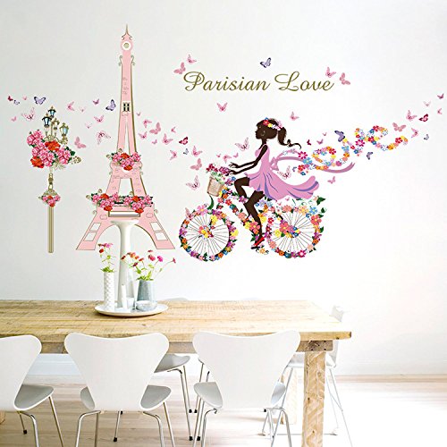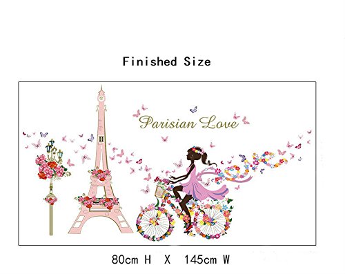 -. Title : SWORNA Nature Series Paris Eiffel Tower Street Lamp Flower Butterfly Girl on Bicycle Removable Vinyl Wall Art Mural Sticker Decal Decor for Living/Bedroom /Hallway/Kindergarten/Home Office 31"H X 57"W