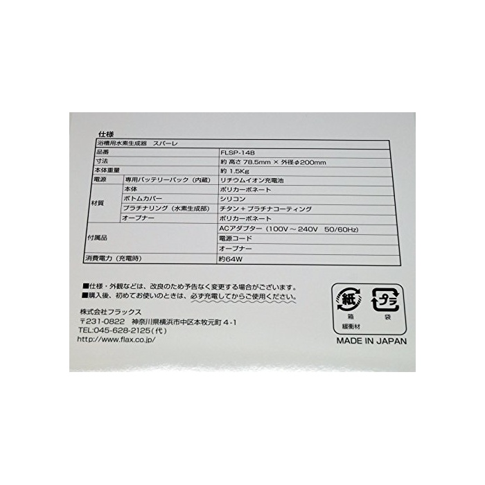 원본상품명: フラックス 浴槽用水素生成器 イルマ?レブル?スパ?レ FLSP-14B