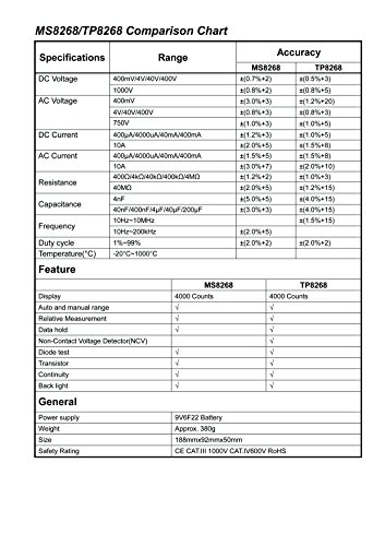 Tekpower TP8268 AC DC Auto/Manual Range Digital Multimeter with NCV Feature, Mastech MS8268 Upgraded