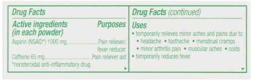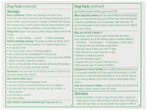 -. Feature : Fever Reducer Powder Packs Aspirin / For temporary relief of minor arthritis pain / Arthritis Strength
