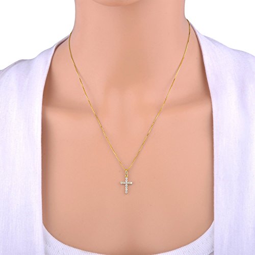 This classic and elegant Cross Diamond Pendant is set in 10K yellow gold with dazzling icy white diamonds. It dangles gorgeously from a 10k gold chain.