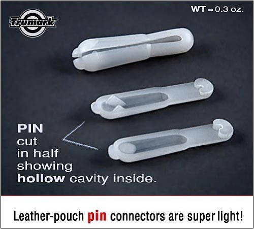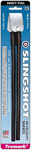 All Trumark slingshots are powered by surgical tubing. The tubing is attached to the leather pouch with light-weight, hollow, pin connectors