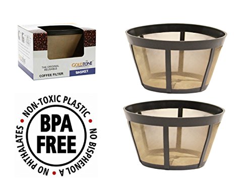 Studio : GoldTone Publisher : GoldTone Product Description Golden mesh baskets work in drip coffee maker, electric coffee maker, or manual coffee maker. Permanent filters for your coffee maker are warranted for 5 years. Coffee maker filter just needs to rinse clean. Fits the BX, BTX, GRX, NHB, NHS, ST, HG and HT models. A Better Cup of Coffee Reusable stainless-steel, golden micro-mesh filter optimizes brewing infusion to enhance coffee flavor GoldToneTM filter retains the coffee bean oils for flavor enhancement Sized to fit all basket style coffeemakers; no over flow or mess Precision crafted in the USA using surgical grade stainless steel woven mesh Offers peace of mind; by protecting the environment; keeps more than 200 million paper coffee filters out of landfill sites each day Environmentally Friendly 136 million households brew 1.2 pots of coffee a day or 163 million pots daily 35 million businesses brew 2.6 pots of coffee a day or 91 million pots daily The coffee brewed yields over 200,000,000 paper coffee filters sent to US landfills each day (30 Acres of Forest) Filter Dimensions: Height: 7 cm Rim Diameter: 12 cm Base Diameter: 8 cm *BUNN is a registered trademark of Bunn-o-Matic Corporation. Neither Discount Scrubs nor GoldToneTM Products has any affiliation with Bunn-o-Matic Corporation 0
