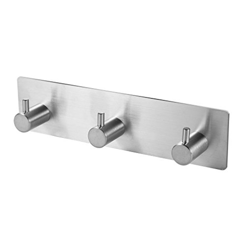 Cozime Bathroom Towel Hooks, 3M Self Adhesive Wall Hook, No Drilling, Brushed Stainless Steel Heavy Duty (3 Hooks)