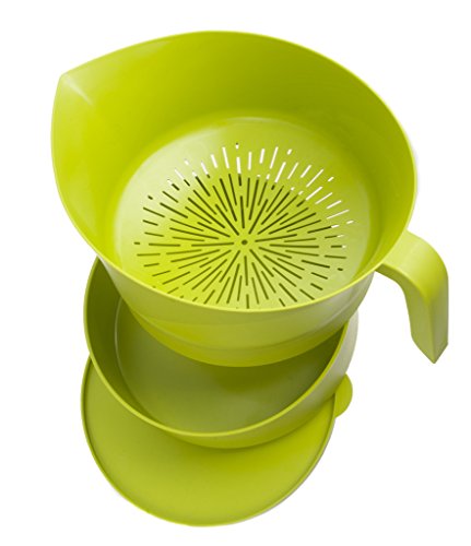 -. Binding : Kitchen -. Brand : Easy Greasy -. Color : Green -. EAN : 0793573197337 -. Feature : Hands-free colander sits in a heat-resistant container, lid included. Tilt strainer and rest handle on counter for maximum draining. / Drain and dispose of messy grease. Strain and save stocks and juices. Hands free design allows user to have both hands on cooking pot or pan. / Strainer holds up to 3 lbs of ground meat. / Pouring handle designed to make transfer of drained food easier. / Flat strainer bottom allows food to spread out and drain faster. Unique drain design prevents ground meat and other small particles from blocking drainage. -. Label : Easy Greasy -. Manufacturer : Easy Greasy -. Model : 4597 -. MPN : 4597 -. NumberOfItems : 1 -. PackageQuantity : 1 -. PartNumber : 4597 -. ProductGroup : Kitchen -. ProductTypeName : KITCHEN -. Publisher : Easy Greasy -. Studio : Easy Greasy -. Title : Easy Greasy Strain & Save Kitchen Colander -. UPC : 793573197337