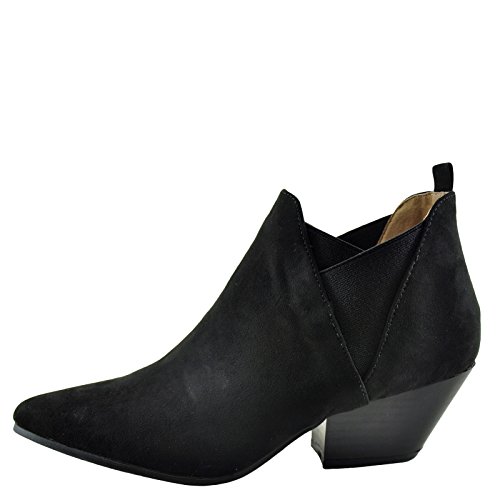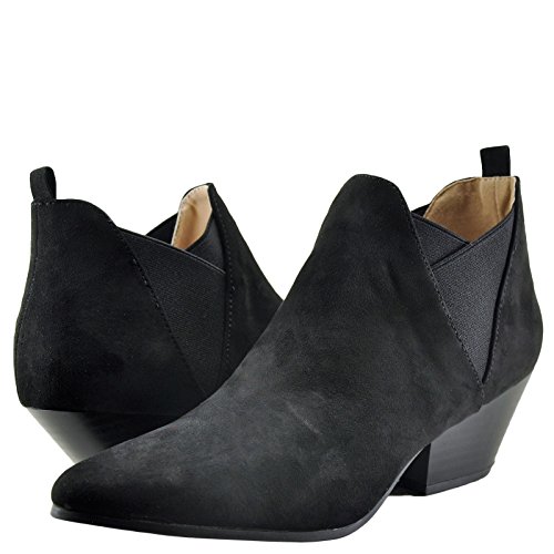 Binding : Apparel Product Description Stay on trend with these versatile ankle booties called Rhythm-15 by Qupid! Featuring: Faux suede upper, Side gorge detailing, Pointed, almond toe construction, Pull-on closure, Lightly cushioned, insole for comfort, Sturdy man-made outsole 0
