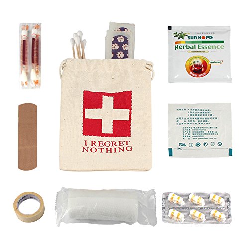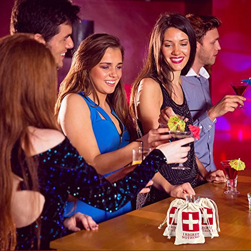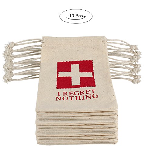 - ❤ I REGRET NOTHING is printed on ivory cotton bag; Packing list: 10pcs hangover kit bags (4 x 6inch)
