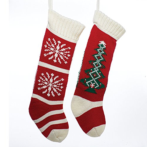 Kurt Adler 22" Christmas Tree & Snowflake Knitted Stockings