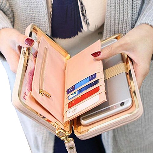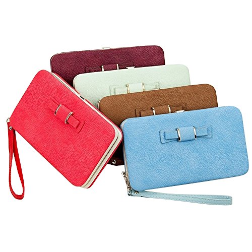 | (Wollsolo)/Accessories/Wallets, Money Key Organizers/DIRECT FROM USA/Wollsolo Womens Leather Zipper Organizer Wallet Cute Fashion with Wrist Strap |