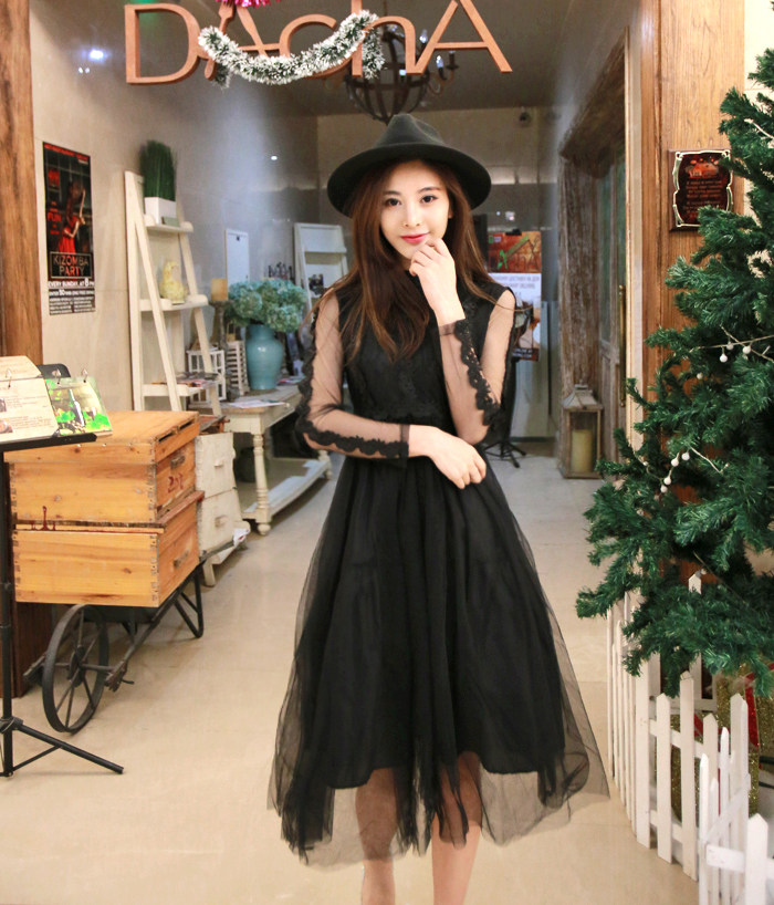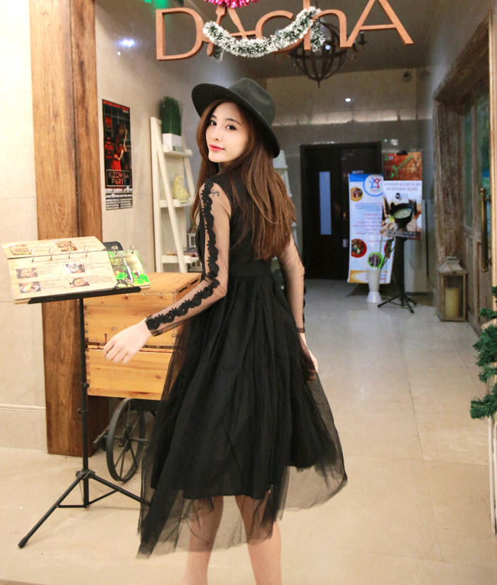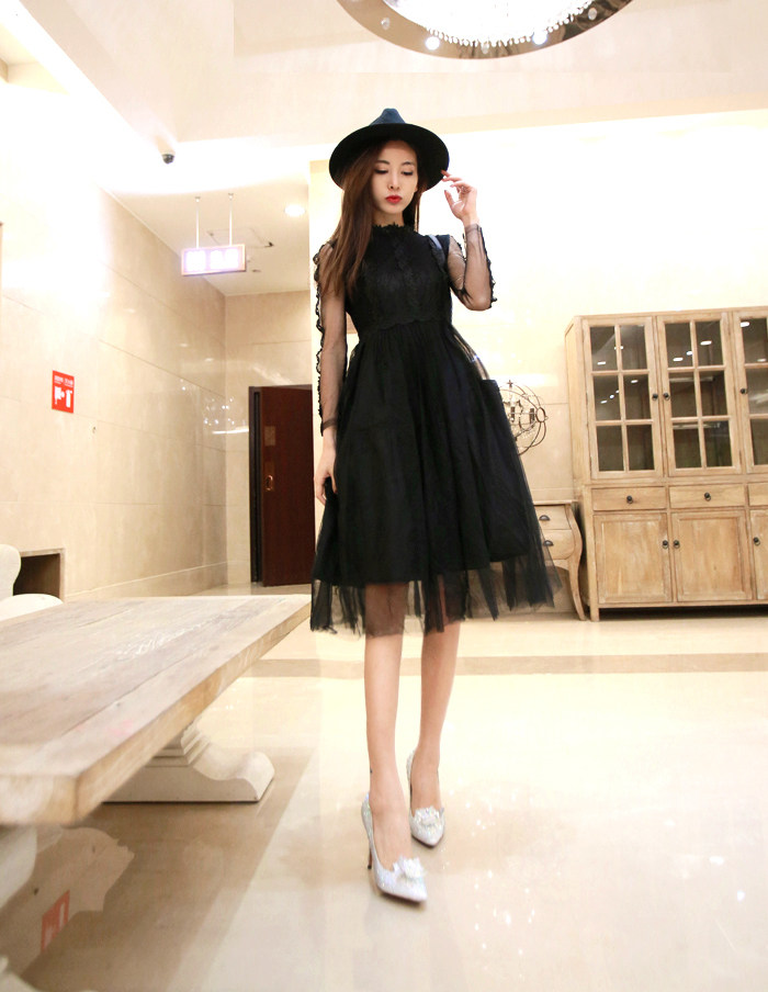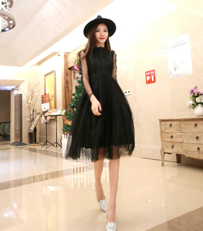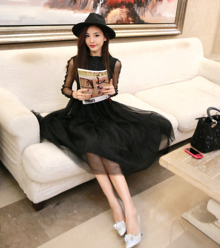 2016春装新款聚会必备优雅小女人网纱花边礼服连衣裙长裙女装潮