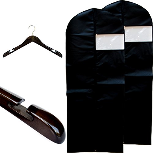 -. Binding : Kitchen -. Brand : Clutter Mate -. Color : Dark Walnut and Black -. Feature : WOOD DRESS HANGERS - (Set of 2) - Proudly display an elegant wardrobe with luxurious style and design using beautifully finished wooden dress hangers featuring functional sized shoulder notches. / BREATHABLE GARMENT DRESS BAGS COVERS - (Set of 2) - The non woven garment bags feature an easy viewing clear plastic window to locate clothes quickly and a metal ring for folding and easy storage. / PREMIUM FINISHED WOOD HANGERS FOR DRESSES - These brown wooden hangers are finished in rich dark walnut which accents the wood grain, and a layer of gloss for absolute beauty. / EXTRA STRENGTH, REAL WOOD CLOTHES HANGERS - With a heavy duty design, each dress hanger is built strong for your long dresses. Perfect to use as blouse hangers, lingerie hangers and gown hangers. / CUSTOMER SATISFACTION - 100% customer satisfaction and high quality customer service is our #1 P.R.Iority. Garment bags for dresses measure 24" x 60". Each wood dress hanger measures 17" x 9" x 1.5". -. IsAutographed : 0 -. Label : Clutter Mate -. Manufacturer : Clutter Mate -. ProductGroup : Home -. ProductTypeName : HOME -. Publisher : Clutter Mate -. Studio : Clutter Mate -. Title : Clutter Mate (Set of 2) Wooden Dress Hangers and Dress Garment Bags