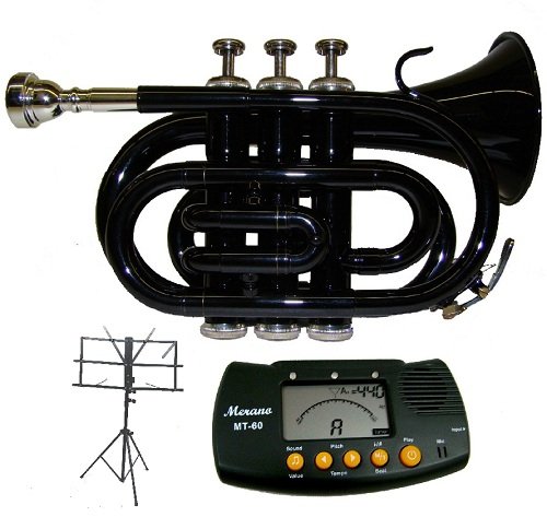 Merano B Flat Black Pocket Trumpet with Case+Metro Tuner+Black Music Stand