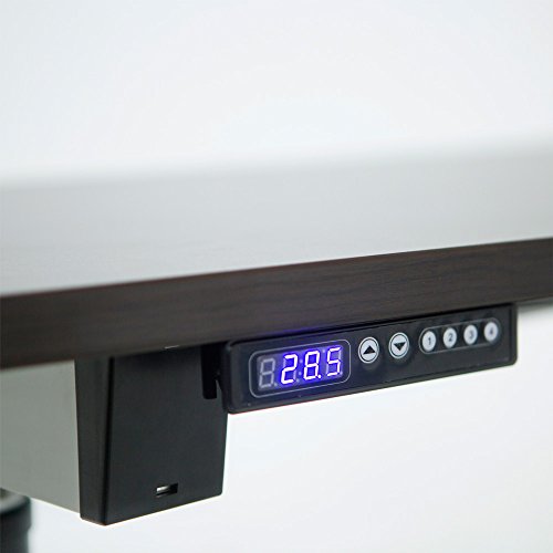 -. Feature : Height adjustable from 27.5" to 45.5" (without top). 6-button memory controller with 4 presets & LED display / Superior stability & sturdy industrial-grade aluminum underframe. Meets BIFMA/ANSI standards / Espresso top finish. 1" thick 63" x 40" scratch-resistant high-pressure laminate top with a left return / 2 x 80mm grommets & adjustable leveling studs
