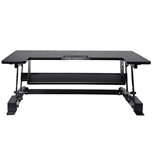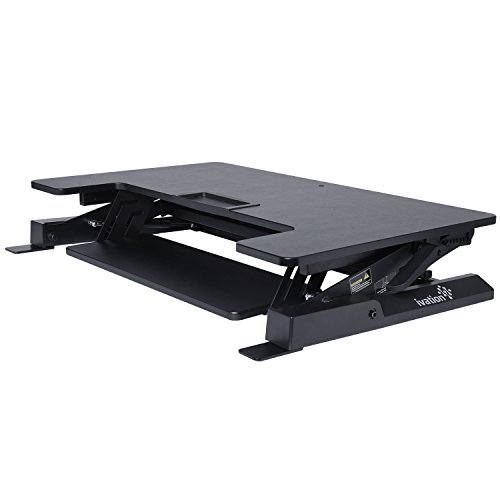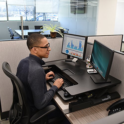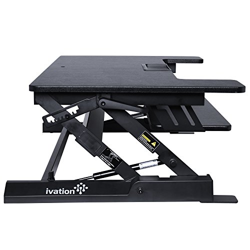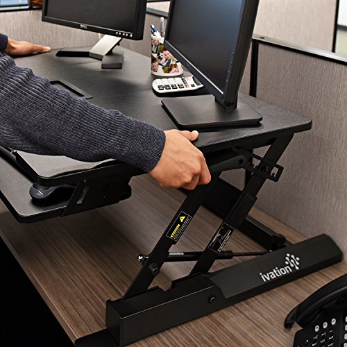 -. Binding : Office Product -. Brand : Ivation -. Color : 36" Width -. EAN : 0840102178616 -. Feature : EASILY CHANGES HEIGHT - Simply Push The Buttons On Either Side Of The Desk & Slide It Up Or Down To The Perfect Work Position For Sitting Or Standing / HOLDS 2 FULL MONITORS - Desk is Small Enough To Fit on Most Regular Desks, Yet Workspace Is Large Enough To Accommodate 2 Full-Sized Computer Monitors / DEDICATED KEYBOARD TRAY - Conveniently Located Lower Tray Fits Any Standard Keyboard For Comfortable Alignment With Your Hands In 90° Position / STABILIZING BASE FEET - Flat Feet Attach To Desk Base To Help Keep It Secure & Stable Atop Any Smooth Horizontal Surface Even with Vigorous Typing / WIRE CLAMP INCLUDED - Special Clamp Holds All Your Cords In Place, Keeping Them Organized & Preventing Messy, Potentially Dangerous Tangles -. IsAutographed : 0 -. Label : Ivation -. Manufacturer : Ivation -. MPN : IVASTDDSKBK -. PackageQuantity : 1 -. PartNumber : IVASTDDSKBK -. ProductGroup : Home -. ProductTypeName : HOME_FURNITURE_AND_DECOR -. Publisher : Ivation -. Studio : Ivation -. Title : Ivation 36” Height-Adjustable Sit-to-Stand Desk with Dual Surfaces Sized & Positioned for Computer Monitors & Keyboard – Rests on Your Existing Desk & Simply Slides Between Sitting & Standing Heights -. UPC : 840102178616
