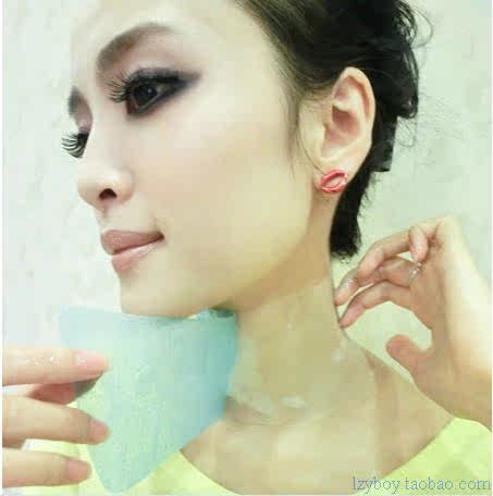 2 the left and right sides of face and neck membrane stretch, the jaw facecurve upwards, gently pat the sticking closer