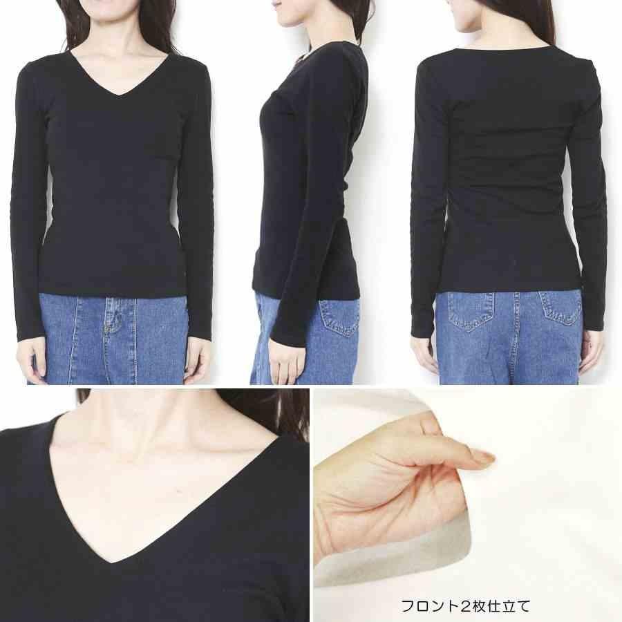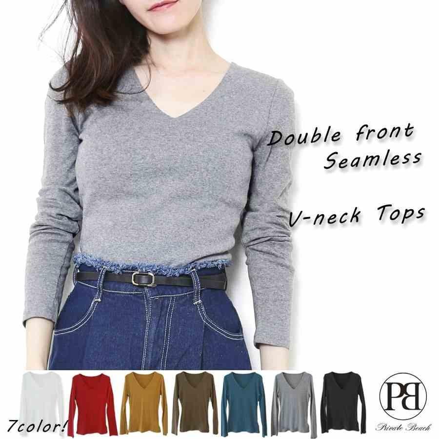 ◆デコルテすっきり見せ♪Vネックトップス◆これぞ大人のロンT!深すぎないVネックだから年齢問わずに着やすいトップス。首まわりがすっきり見えるほど良いVネック。前から透けにくい、前身2枚構造!首元スッキリなシームレス仕様です。スリムシルエットなのでアウターも羽織りやすいです。秋気分をたっぷり入れた7カラー展開です★※ブラウンはカーキに近いブラウンです。