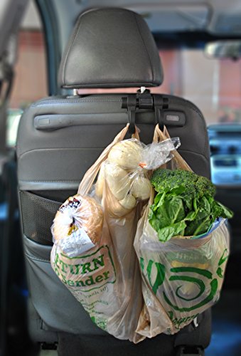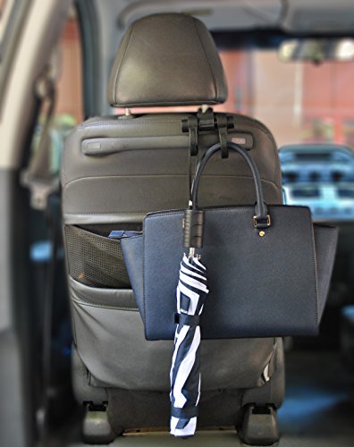 MAXSA Headrest Multi-Hanger, 2 Hooks for organizing your Car & Holding Purses, Groceries, Bags, Coats, Black 25526