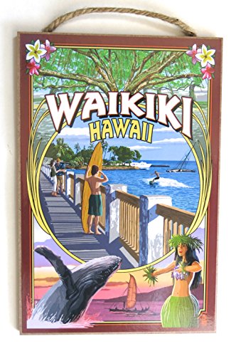 Waikiki, Hawaii Souvenir, Wall Decor, 7x10.5 Wood Wall Plaque