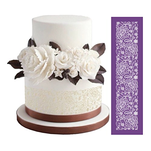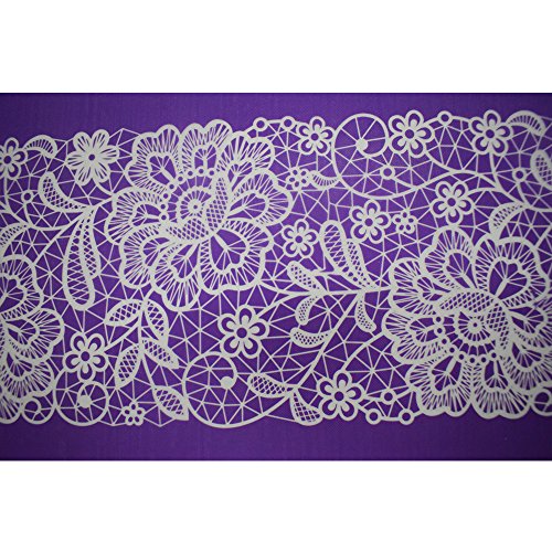 ART Kitchenware 19"×5.12" Large Alencon Lace Mesh Stencil Lace Floral Cake Stencil Wedding Cake Side Stencils Template Mold Cake Decorating Bakery Tool MST-42 Purple Color